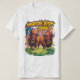 American Buffalo Bison in the colourful text. Two bison are positioned side by side in front of an American flag, creating a patriotic and majestic scene.