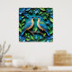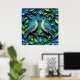Elegant handcrafted artwork depicting two blue and yellow birds perched amidst vibrant green foliage and flowers, symbolising nature and artistry. Ideal for themes of decoration, craftsmanship, and vibrant ecosystems
