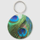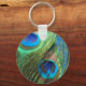 Two Blue Peacock Feathers Keychain