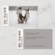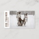 Two Border Collies Dog Trainer Business Card shows off a beautiful photo of the two border collie dogs performing tricks in a snowy season. The white background and brown typography blended with the photo creating a modern minimalist dog training business card.