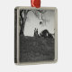 Two boys flying kite on hill B&W Metal Tree Decoration