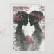 Cute wedding invitation for Lesbian, LGBTQ couple. Two hand drawn brides facing each other, in a garden with mauve, pink leafy branches. They have their hair up and the pretty leaves over their face makes a lovely silhouette. Pencil drawing for your special day.