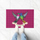 A decorative doormat featuring two colourful hummingbird friends under each others wing, maybe having a sing song on the way home after a day on the nectar.