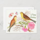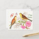 Two brown and yellow birds on branches, Birthday Postcard