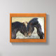 A pair of brown wild horses sharing a tender moment in a grassy field. These two brown paint horses can be seen gently nuzzling each other, enjoying each others company. Their tousled manes blowing in the breeze. Displaying power, kindness and freedom. Great for horse lovers.