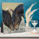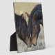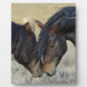 A pair of brown wild horses sharing a tender moment in a grassy field. These two brown paint horses can be seen gently nuzzling each other, enjoying each others company. Their tousled manes blowing in the breeze. Displaying power, kindness and freedom. Great for horse lovers.
