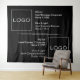 A customisable logo template banner designed for businesses and corporations to display their logo, name, and slogan/motto in an elegant, minimalist black and white design. Personalise this tapestry banner by incorporating up to companies' logos, names, and slogans or other event/function details. If desired, customise the background to align with your company's colour scheme. This template banner is ideal for cooperative business meetings, trade shows, photo shoots, special publicity events, company gatherings, or annual holiday celebrations.
