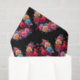 Vibrant illustration featuring two cardinals among colourful roses and hearts, symbolising love and beauty, against a black background.