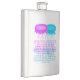 The product is a good size and came exactly as it was pictured. The lid is not attached to the flask, which could be dangerous on drunken nights... The print came out surprisingly well and looks very sharp. Would definitely recommend.
