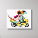 Two Cartoon Raptors Riding A Motor Scooter. Canvas Print