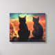 Two Cats on Rooftop Overlooking City at Night Canvas Print