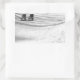 Two wood chairs buried in snow up to their seats sit in the upper left portion of the black and white photograph. Near the centre and above, long tree trunk shadows cross the frame horizontally dipping in gentle curves along the snow-covered terrain. Irregular balls of snow spill down the right slope in the foreground.