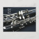 This pretty postcard features two clarinets on a black background. Customisable text is in the upper left corner.