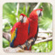 Two Colourful Parrots on a Tree Branch Square Paper Coaster