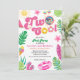 This tropical summer pool birthday party invitation features tropical leaves, tropical flowers,pool tire, sun glasses, ice cream and a flip flop sandal, A Perfect summer pool 2nd birthday two cool theme photo birthday invitation.