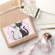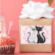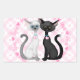 Two cute cats (Siamese) one black, one white and grey on a pink background within a circle of hearts and love. from Ricaso