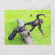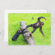 Two cute cheeky baby chimps playing on a log postcard