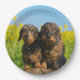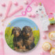 Two Cute Dachshunds Dogs Dackel Friends Pet Photo Paper Plate