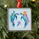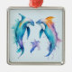 Abstract illustration with two cute blue dolphins with orange and purple splatters