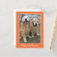 This postcard features a photograph of two cute golden retrievers who are outside in an apple orchard. Cover text reads, "Happy Thanksgiving!" while text on back states, "Wishing You the Best This Thanksgiving and Always." Both can be changed or removed to suit your needs.