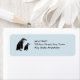 Two cute penguins standing in a line, one larger than the other, followed by your text - a label for your book or music collection, or mailing return address.