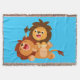 Two Cute Playful Cartoon Lions Throw Blanket