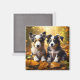 Two Cute Puppies Playing in Fall Leaves Magnet