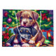 Cute Christmas gift bag with an illustration of two cute puppies playing under the Christmas tree.