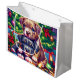 Two Cute Puppies Playing under the Christmas Tree Large Gift Bag