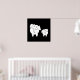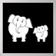 This is a nice fun illustration of an adult elephant and baby elephant. This white elephant design is on a black background.