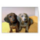 My niece has two dachsunds the same color as these two dogs. The picture is EXACTLY like her dogs. The best part of all Zazzle's cards is you can write any message that applies to the occasion. I will never buy a card anywhere else but here. The print is great and you can pick any print type and the quality of the picture is better than if I took a picture of the dogs myself.