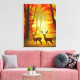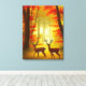 Canvas in an illustration of two deer, a buck and a doe, against a background of autumn woods, in shades of brown, golden yellow and rust orange