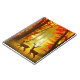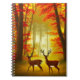 Notebook in an illustration of two deer, a buck and a doe, against a background of autumn woods, in shades of brown, golden yellow and rust orange
