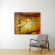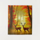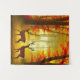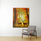 Tapestry in an illustration of two deer, a buck and a doe, against a background of autumn woods, in shades of brown, golden yellow and rust orange