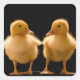 Two ducklings looking at one another square sticker