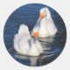 A photo of two pure white Emden or domestic geese. Taken at Roath Park Lake, Cardiff, Wales.