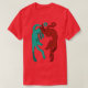 I give wanted to give this a 4 instead of a 5 because these Basic DARK T0shirts run unexpectedly SLIM or Narrow. Which is great if you do not have a potbelly, but I have a paunch. It isn't the shirt's fault that I've got a beer belly. The design and shirt itself is a quality cotton shirt. The color is more of a deep purple, but still a very pretty color. The Basic DARK T-shirts run a bit SLIMMER than the Basic Ts. The neck is a fraction narrower (or seems to be narrower) also. I'm a paunchy middle-aged woman and my neck is 12 inches (31cm) thick and the neckline fell about the same as in the photo of the man, and I had the desire to tug it a bit. So if you're a thick necked man or like loose shirts, be aware these are slimmer shirts. Once I get rid of my lockdown paunch it'll look great. The shirt washed well in cold water with no apparent bleeding. We don't have a dryer, so it hung dry. Did not shrink. Love the colors and the design. The design looks smaller on my shirt than it does on the model on-line. But still, it looks good on the shirt. The printing looks as it does on the model, just the size seems fractionally smaller. Washed garment in cold water, hung dry and design appeared unaffected.