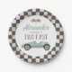 Growing up Two Fast Race Car 2nd Birthday plate with blue retro race car.