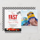 Start your engines! Celebrate your little speedster’s second birthday with this Two Fast race car invitation. Featuring a cool race car theme and a spot for your child’s adorable photo, this design is perfect for a high-energy 2nd birthday party. The bold colours and chequered flag details bring the racing fun to life! Personalise with your party details and get ready for a fast and fun celebration.