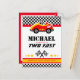 Start your engines and shift into gear! Celebrate your little racer's second birthday with our Growing up two fast race car thank you card This too fast race car thank you postcard features a red race car on black and white square pattern. Perfect for your little racer’s 2nd birthday go kart birthday party, car birthday party, two fast birthday party birthday party or transportation themed birthday party.