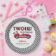 This design features a red race car theme "Two Fast Two Curious" for a birthday party with a cute racing car, black and white chequered pattern. This product can be easily personalised. If you need help with the customisation of the product or need matching products kindly please contact me via Zazzle.