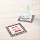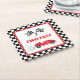 The eye catching coaster blend vintage charm with playful whimsy, featuring a beautifully illustrated retro race car in red colour.