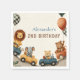 Bring the fun of the racetrack to the jungle with this adorable “Two Fast” safari birthday design. Featuring playful animals like lions, elephants, and bears driving colourful race cars with balloons and banners, it’s the perfect theme for your little one’s second birthday celebration.