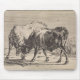 This design features an ilustration by the Dutch artist Paulus Potter (1625–1654), who specialised in depicting animals. This artwork shows two bulls fighting with each other. They are locking horns aggressively in order to compete for dominance. Fights between bulls often involve headbutts and body blows. The artist has clearly observed the beasts from close quarters, since he depicts their physical form so clearly, such as their hooves, shaggy fur, long tails, lowered heads and wide eyes.