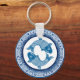 Two Fish Pisces Koi Carp Chinoiserie Blue Pattern Key Ring