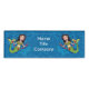 This name badge is a mix of medium and dark blues with two pretty folk art mermaids with green tails holding a gold string of red hearts. Customise your information with the template.