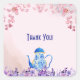 A delightful sticker for a pop of colour on your gifts and envelopes. Pink petals falling on to a blue teacup and purple flowers. A pale pink background is the perfect backdrop.