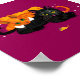 Two geometric cats laying next to each other. Ginger cat laying against black cat with toy mouse in front of them. When one cat sits by another, it often signifies a level of trust and emotional closeness, a sign that they feel comfortable and safe in each other's presence. This behaviour reflects the social dynamics of cats, who, while solitary hunters, can form strong bonds and social groups. Move over, the sunbeam is bigger here, and I've decided you're part of my sunbathing team now.