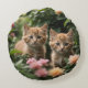 Two Ginger Kittens Exploring A Lush Garden Round Cushion