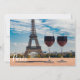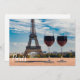 Two glasses of wine on Eiffel tower and Paris skyline background.